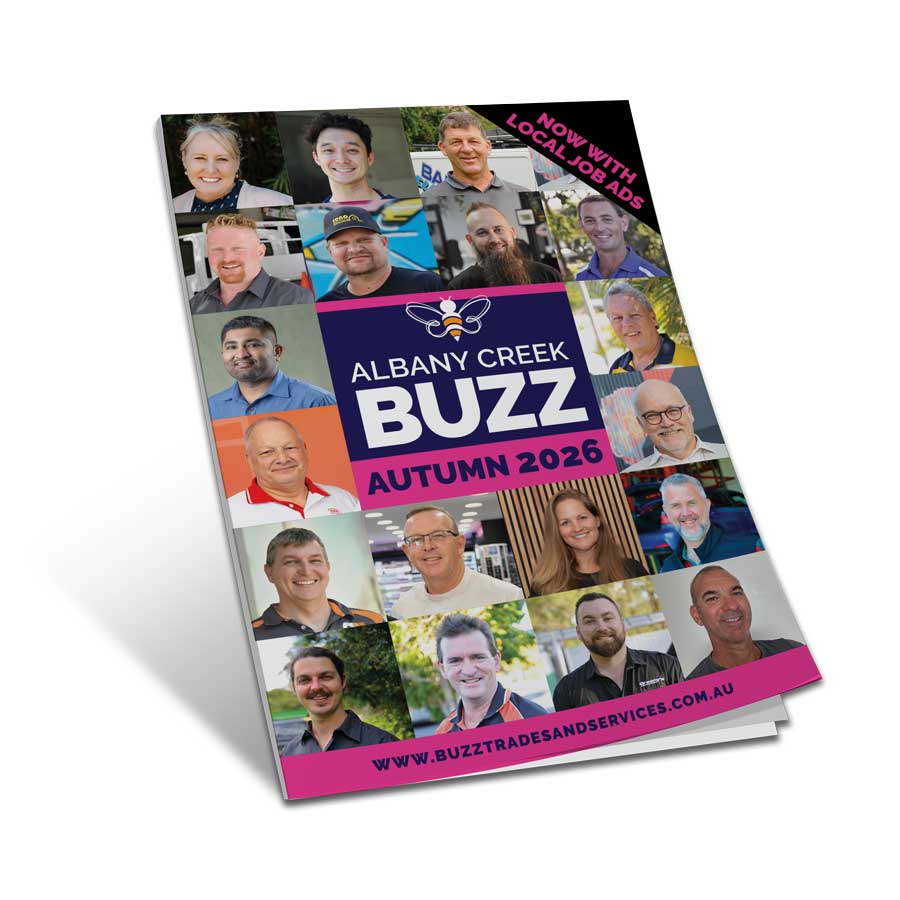 Every home in Albany Creek, Eatons Hill and Bridgeman Downs has received the Albany Creek Buzz for the last 7 years. It is the only local magazine featuring businesses and community groups operating in the area. The glossy pages are plastic-wrapped and delivered door-to-door every 3 months.